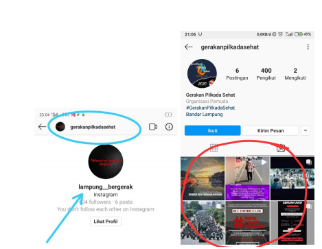 teknokra.co: Akun @lampung_bergerak beralih fungsi menjadi @Gerakanpilkadasehat (18/11). Postingan @Gerakanpilkadasehat berisikan propaganda Pilkada sehat secara kesehatan, maupun politik dan hukum.