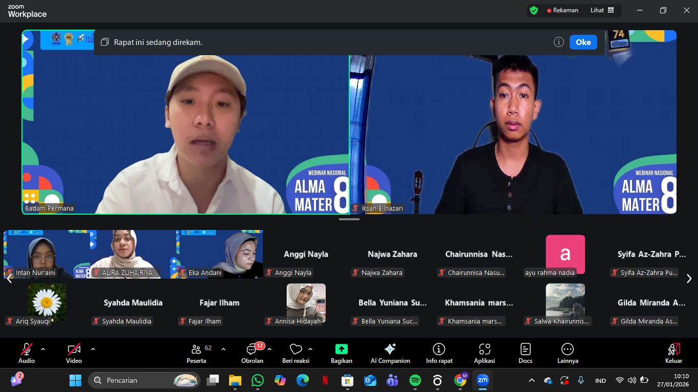 Teknokra.co : Lembaga Pers Mahasiswa (LPM) Teropong Universitas Muhammadiyah Sumatera Utara (UMSU) mengadakan webinar secara terbuka dengan tema “Building A Legally Literate Digital Identity : APl Smart Content Creation Fot The next Gen Creator” peserta dihadiri 64 orang dari berbagai universitas di Sumatera Utara dan Indonesia. Webinar berlangsung secara daring pada Selasa, (27/1) pukul 08.30 WIB sampai dengan 09.00 WIB.