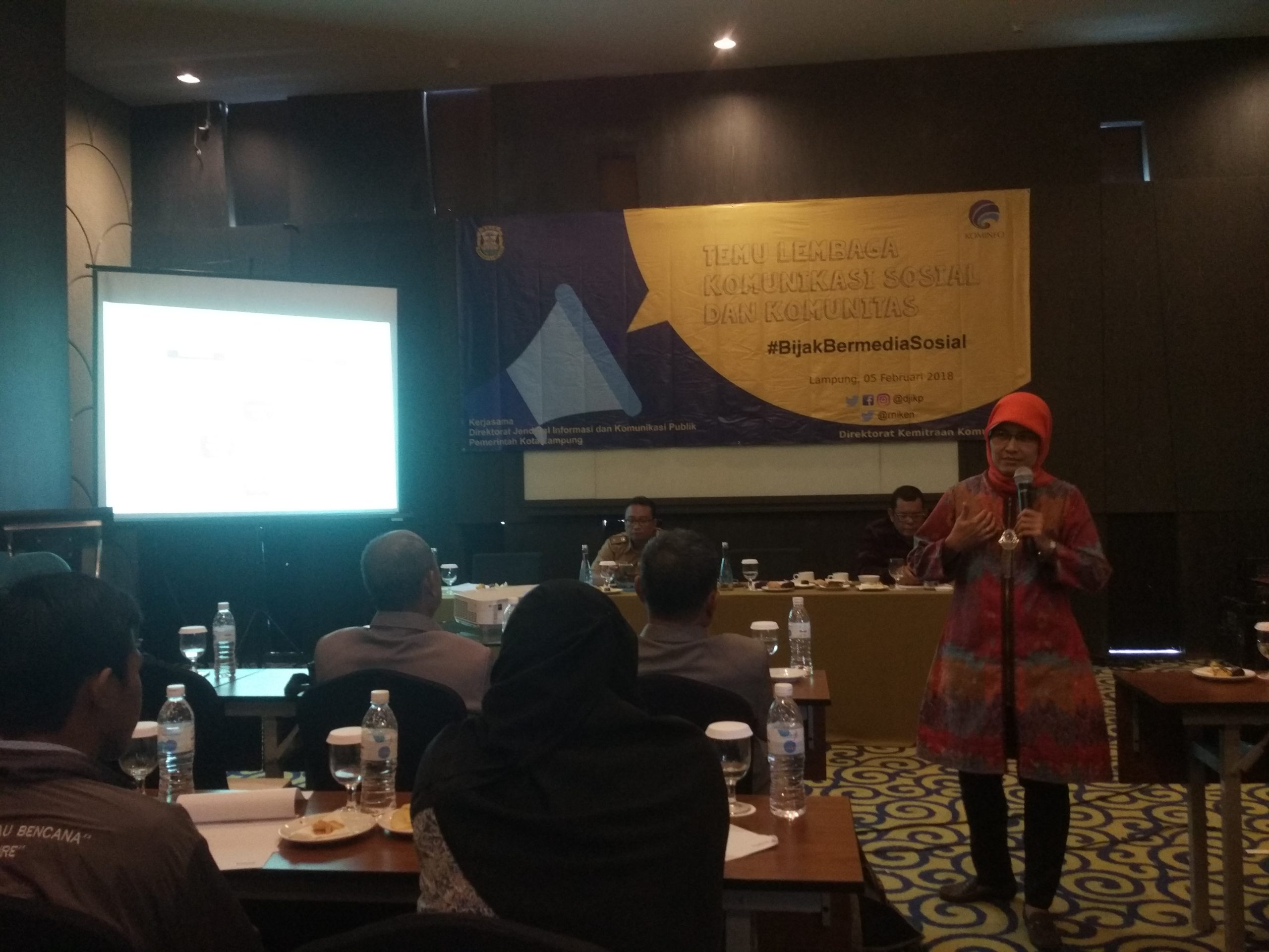 teknokra.co : Lembaga komunikasi sosial dan komunitas di Lampung ikuti diskusi seputar literasi Bijak Bersosial Media. Acara ini menghadirkan pembicara, praktisi Komunitas Informasi Media (KIM), Dra. Manik Suniantari dan Praktisi Media, Juwendra Asdiansyah, Senin, (5/2) di Hotel Novotel.