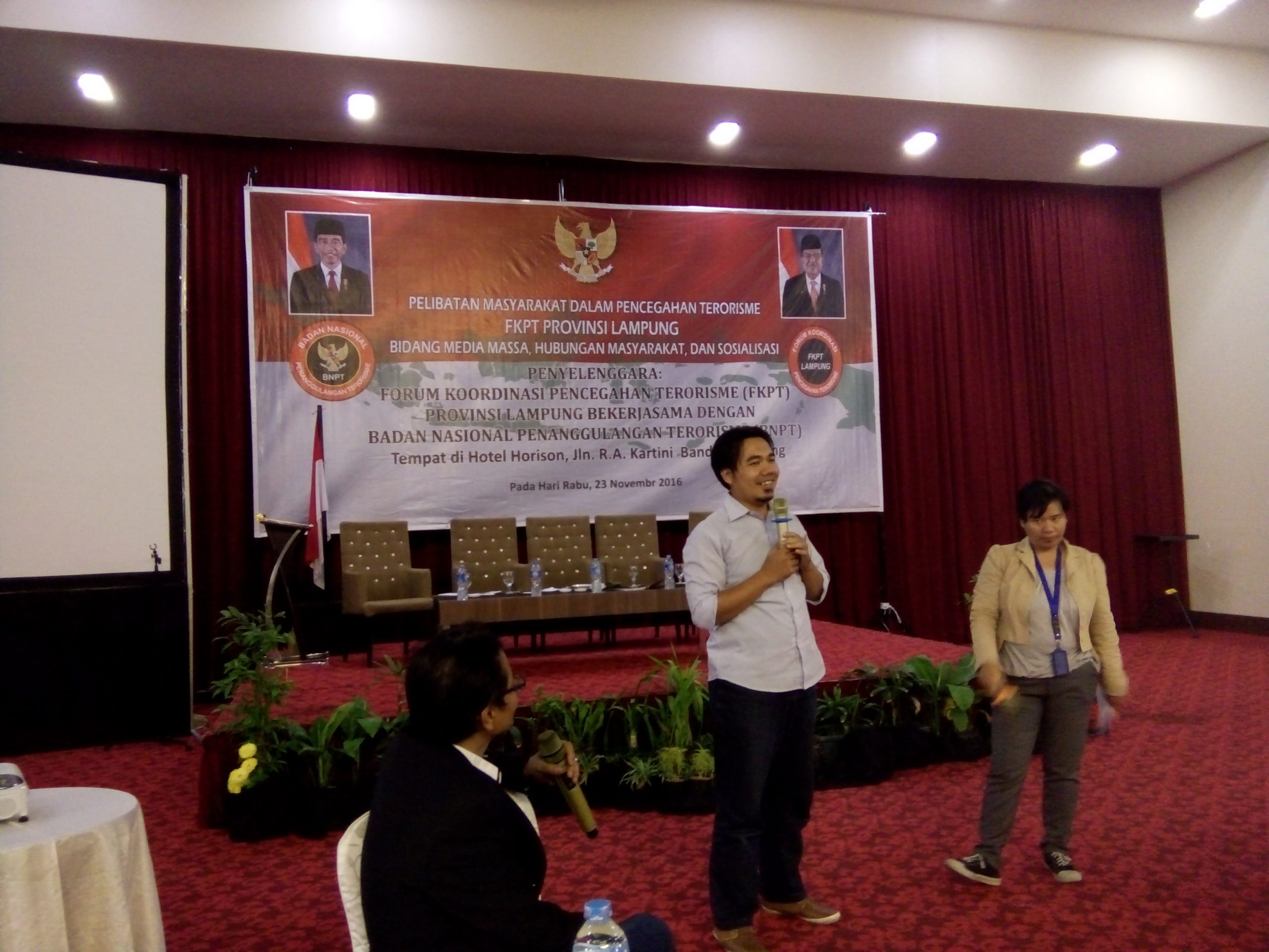 teknokra.co: Forum Koordinasi Pencegahan Terorisme (FKPT) Provinsi Lampung bekerjasama dengan Badan Nasional Penanggulangan Terorisme (BNPT) mengadakan Pelatihan dan Dialog Insan Media, Humas dan Ormas dalam Pencegahan Terorisme, Rabu (23/11).
