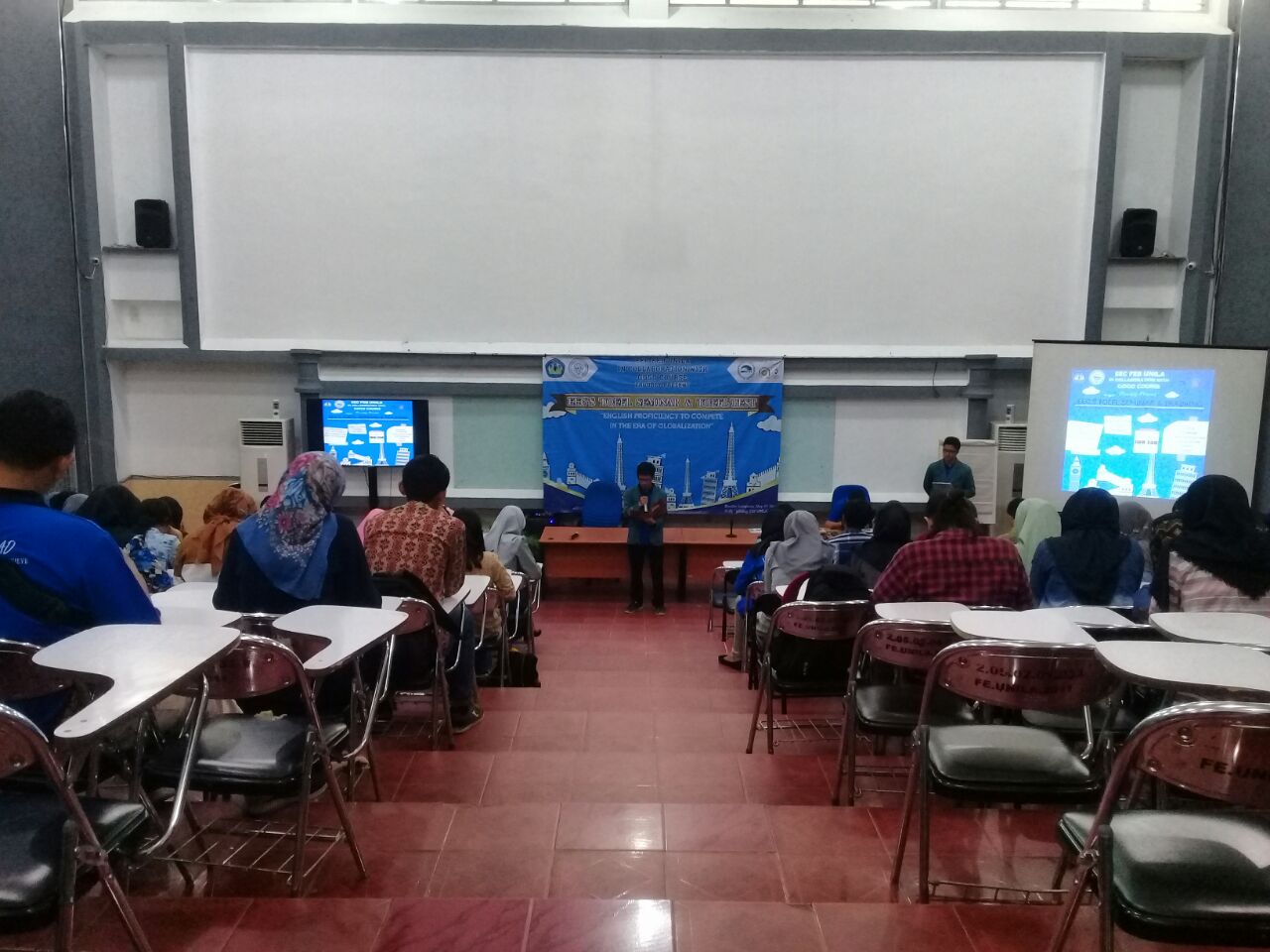 teknokra.co: Economic’s English Club (EEC) Fakultas Ekonomi dan Bisnis (FEB) kerja sama dengan Gogo Course menggelar seminar bertema “English Profeciency to Compete in The Era of Globalization” dan Tes TOEFL di Gd. A101 FEB, Sabtu (5/5). Kegiatan ini guna mengukur kualitas kemampuan berbahasa Inggris para peserta yang dibutuhkan di era globalisasi.