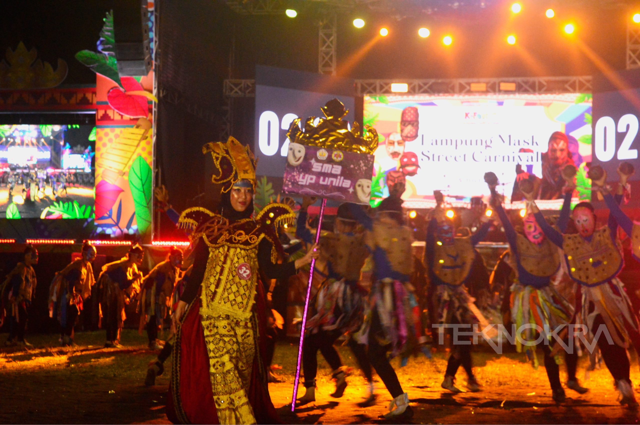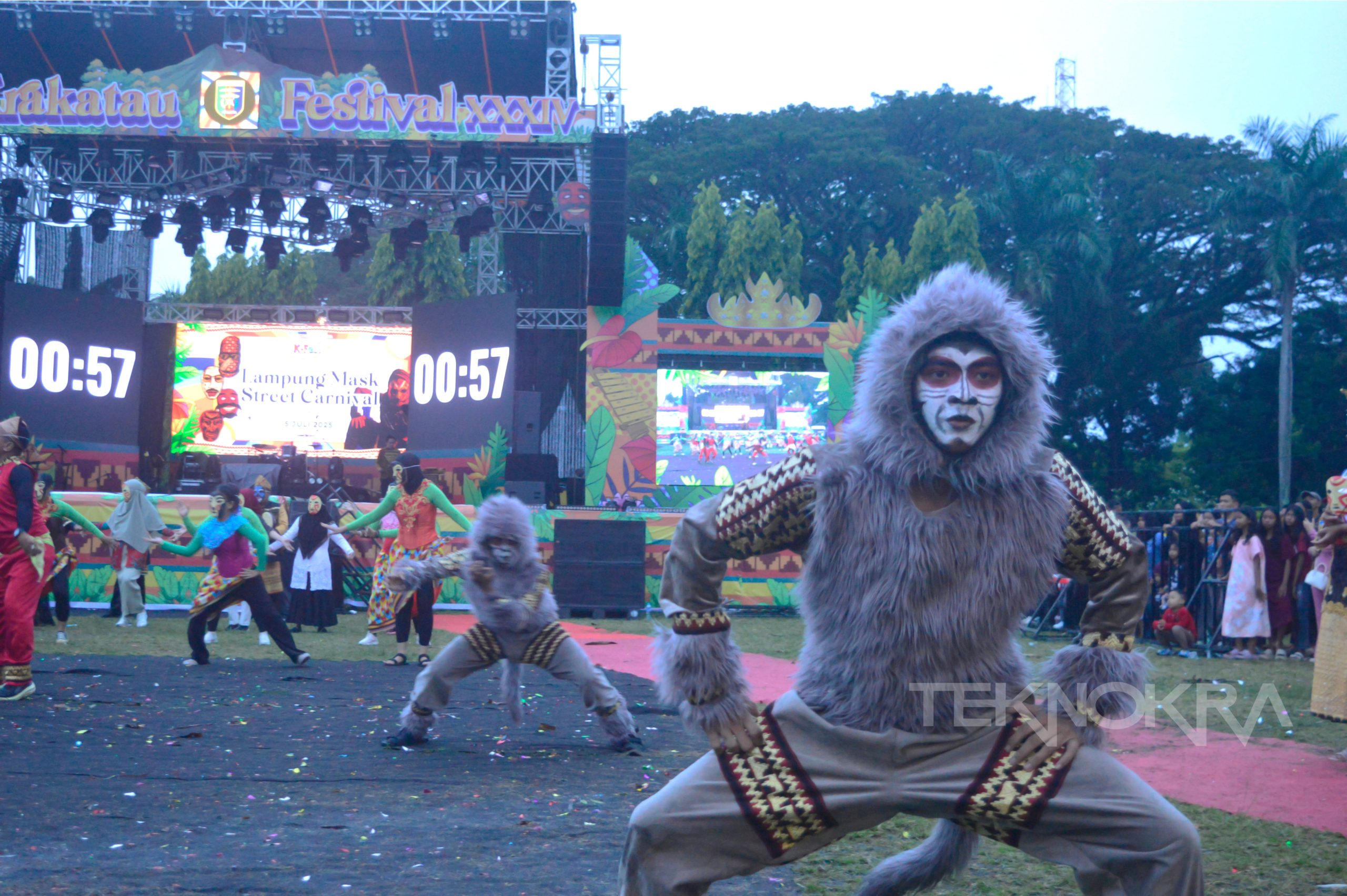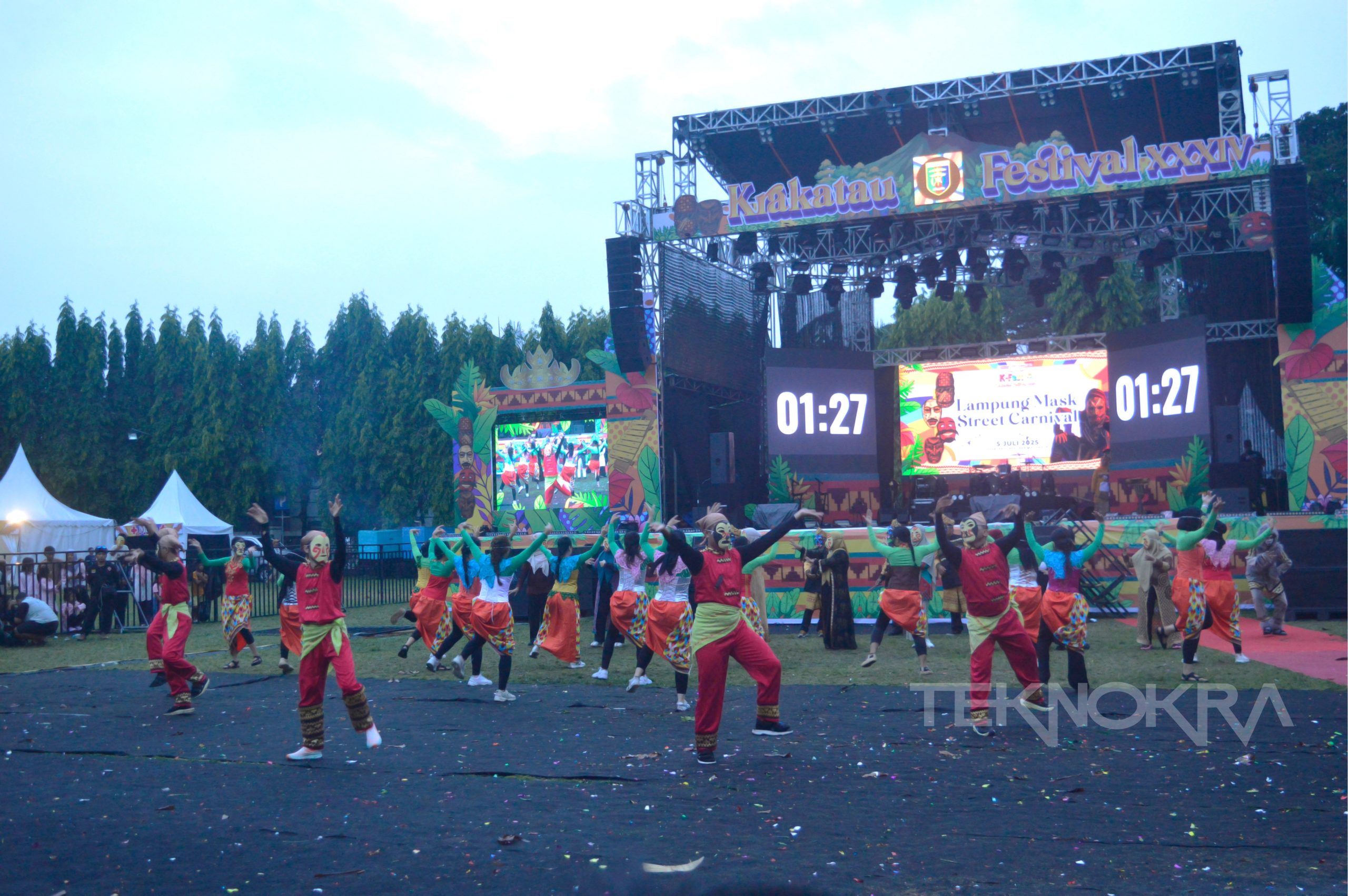 Teknokra.co : Festival Krakatau ke-34 Lampung menghadirkan kearifan lokal, salah satunya budaya topeng. Dengan mengusung tema budaya Sekura, Tupping dan Nyubuk, maka puncak acara festival yang bertajuk “Lampung Mask Street Carnaval” yang diadakan pada Sabtu, (05/7) di Lapangan Korpri, Kompleks Perkantoran Pemerintah Provinsi Lampung menampilkan warna-warni budaya topeng.