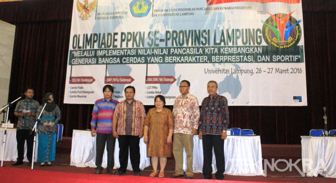 teknokra.co: Menciptakan generasi cerdas dan memiliki nasionalisme tinggi, jadi salah satu tujuan diadakannya olimpiade Pendidikan Pancasila dan Kewarganegaraan oleh Program studi Pendidikan Pancasila dan Kewarganegaraan (PPKn) FKIP Unila, Sabtu-Minggu (26-27/3). Acara yang diadakan di Gedung Serba Guna (GSG) Unila ini mengambil tema “Melalui Implementasi Nilai-nilai Pancasila Kita Kembangkan Generasi Bangsa Cerdas Yang Berkarakter, Berprestasi, Dan Sportif”. Didanai oleh Mahkamah Konstitusi (MK), acara ini memiliki sembilan cabang lomba antar siswa Sekolah Dasar (SD), Sekolah Menengah Pertama (SMP), dan Sekolah Menengah Atas (SMA).