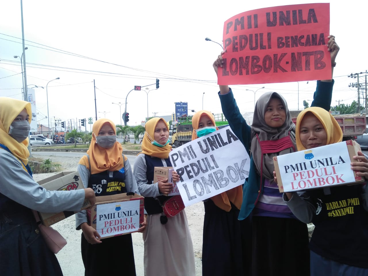 teknokra.co: Pergerakan Mahasiswa Islam Indonesia (PMII) Unila mengadakan penggalangan dana peduli Lombok di Lampu Merah jalan Soekarno-Hatta, Sukarame, Bandarlampung, Minggu (12/8). Penggalangan dana oleh rayon FMIPA, FEB, FISIP ini melibatkan 13 orang yang merupakan perwakilan dari masing-masing rayon di Universitas Lampung.