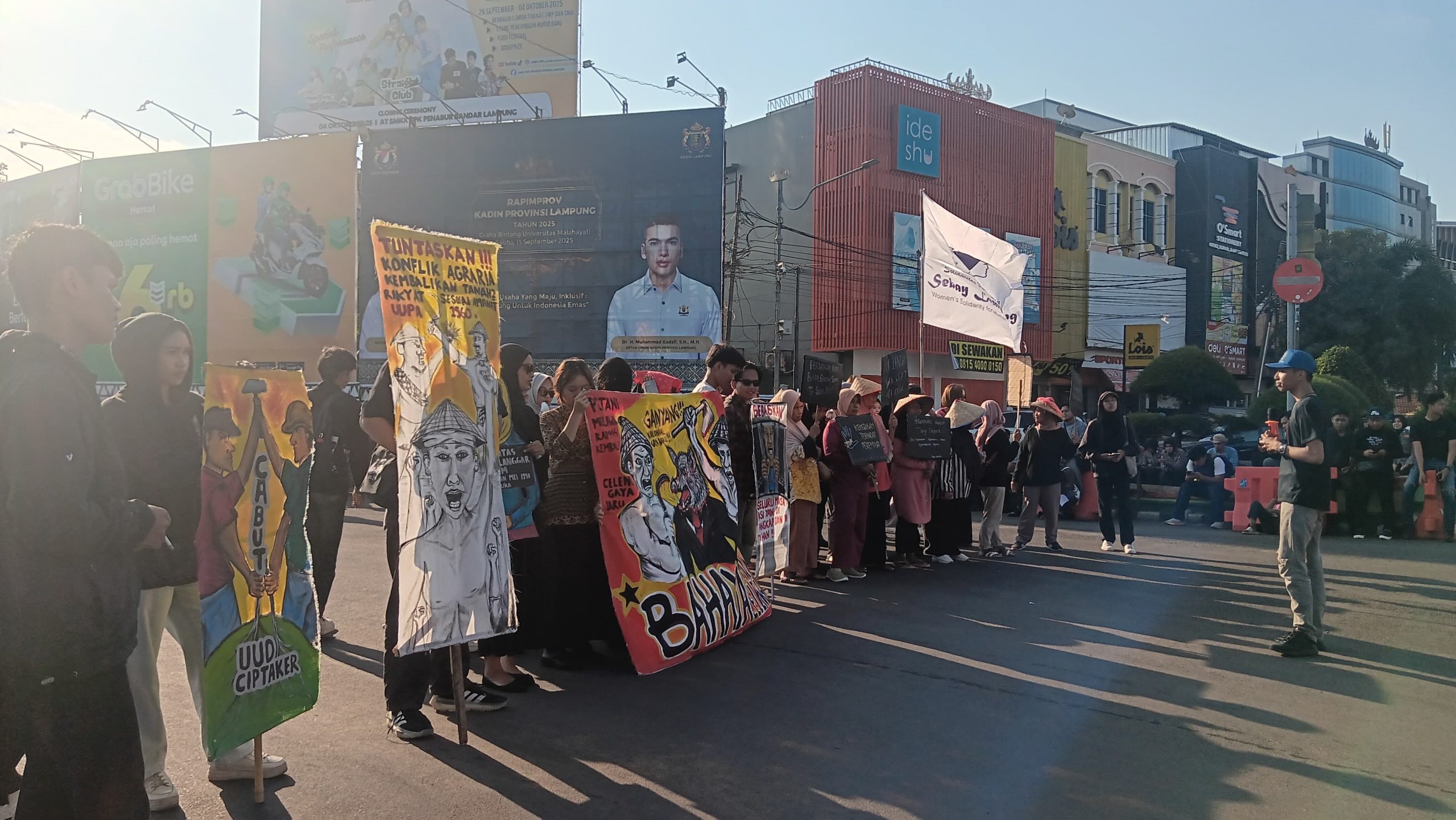 Teknokra.co : Aliansi Lampung Melawan (ALM) melakukan aksi damai memperingati Hari Tani Nasional dengan mengusung tema “Bangun Persatuan Gerakan Rakyat, Lawan Perampasan Ruang Hidup” di Tugu Adipura, Bandar Lampung, pada Rabu (24/9) pukul 14.00 WIB.