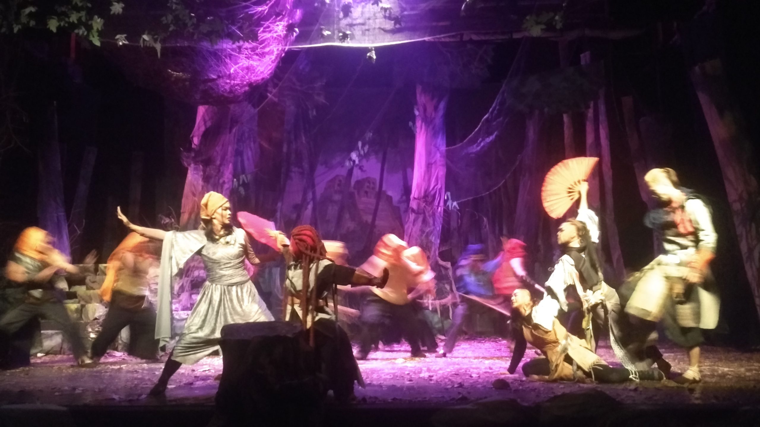Memasuki pertengahan cerita, Iswadi Pratama sukses mencampurkan pencak silat dalam adegan perkelahian. Saat putrinya Ismene bertemu dan mengabarkan kepada Oedipus mengenai nujum yang terbaru. Oedipus diperebutkan dan pertumpahan darah pun dimulai. Rombongan prajurit dari Thebes mencari keberadaan Oedipus yang dipimpin oleh Creon, pamannya. Suara serdadu yang ramai semakin mendekati tanah Athena, berkostum layaknya jaman Yunani dengan perpaduan mediterania.