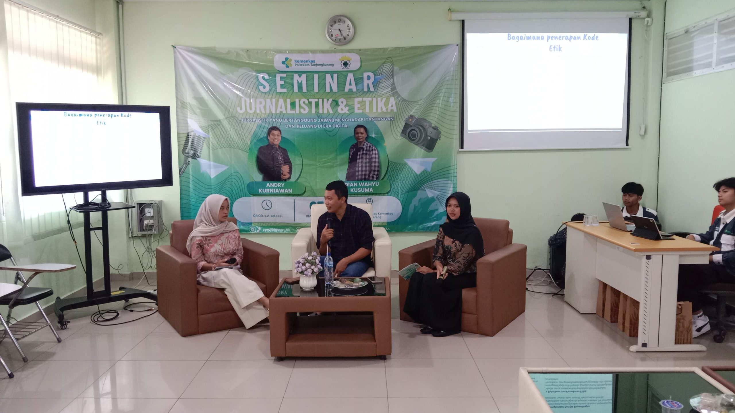 Teknokra.co: Unit Kegiatan Mahasiswa (UKM) Pers Lightteen Politeknik Kesehatan (Poltekkes) Tanjung Karang menggelar Seminar Jurnalistik dan Etika bertema “Jurnalistik yang Bertanggung Jawab Menghadapi Tantangan dan Peluang di Era Digital”. Kegiatan berlangsung di Kampus A Poltekkes Kemenkes Tanjung Karang pada Minggu, (5/10).