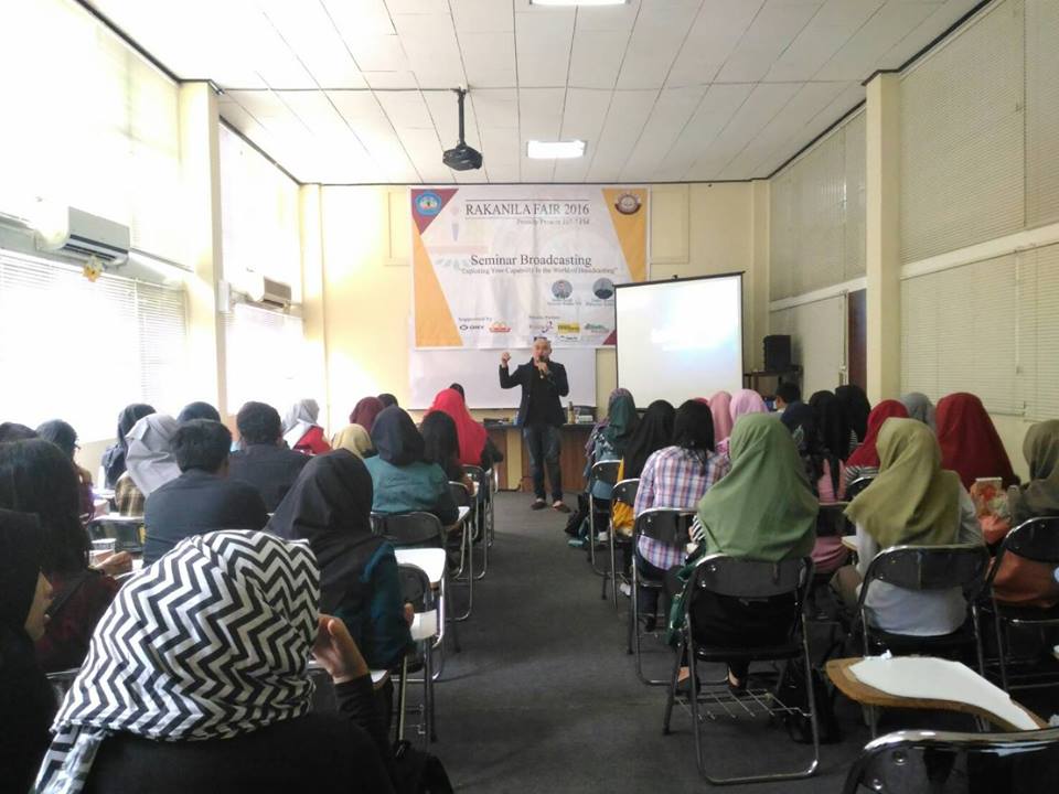 Unit Kegiatan Mahasiswa Radio Kampus Unila (UKM Rakanila) mengadakan Seminar broadcasting di gedung UPT Pengembangan Karir dan Kewirausahaan (PKK) Unila, Jumat (8/10). Seminar yang mengusung tema Exploring your capability in the world of broadeasting ini diikuti oleh 70 mahasiswa Unila dari berbagai jurusan.
