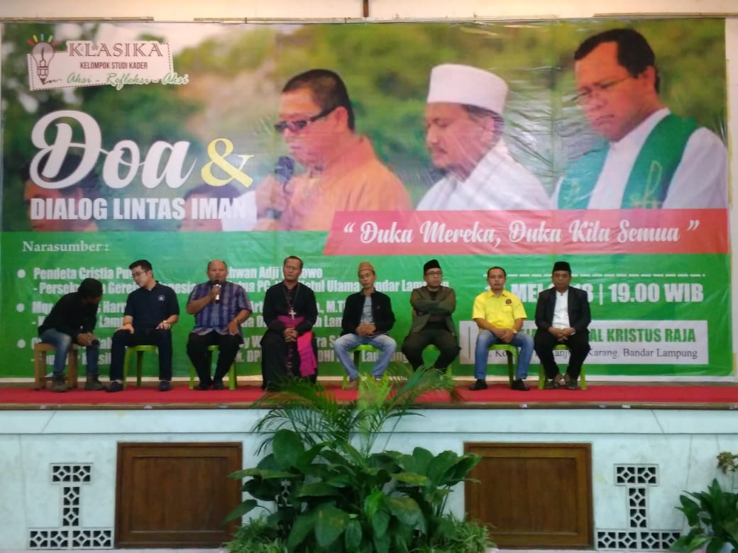 Unila-Tek : Menanggapi teror yang terjadi di beberapa tempat di surabaya beberapa hari yang lalu, klasika (kelompok studi kader) mengadakan Doa dan dialog lintas agama di Gereja Katedral Kristus Raja Tanjung Karang selesa malam (16/5).