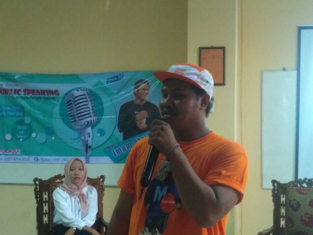 FISIP-Tek: Ilmu Komunikasi FISIP Unila mengadakan sharing session mengenai public speaking di gedung F 4.1 FISIP Unila, Senin, (14/5). Mengusung tema “To Be Yourself in Public Speaking”, Komika dan MC, Imam Dharma menjadi pembicara dalam acara tersebut.