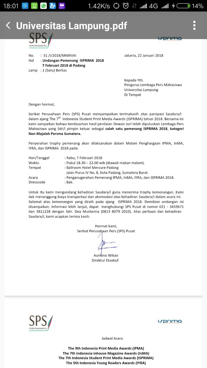 teknokra.co : UKPM Teknokra kembali terpilih sebagai salah satu pemenang dalam ajang The 7th Indonesia Student Print Media Award (ISPRIMA) tahun 2018. Teknokra meraih penghargaan untuk kategori Non Majalah Persma Sumatera.
