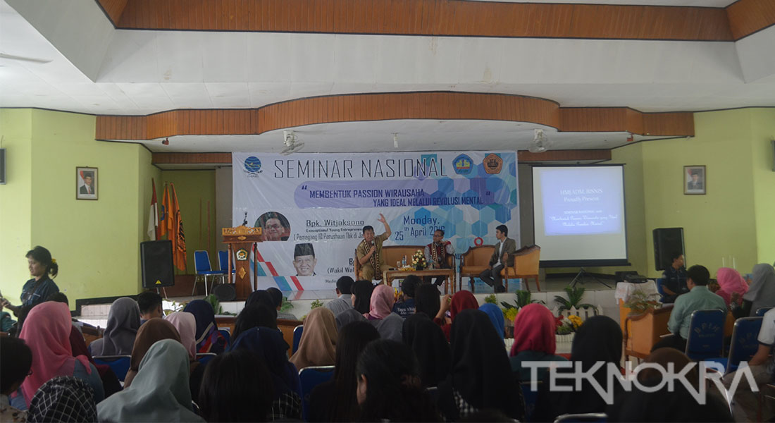 teknokra.co: Himpunan Mahasiswa Jurusan (HMJ) Ilmu Administrasi Bisnis Fakultas Ilmu Sosial dan Ilmu Politik (FISIP) Unila menggelar seminar nasional di Aula Ar-rafah Asrama Haji, Bandarlampung, Senin (25/4).